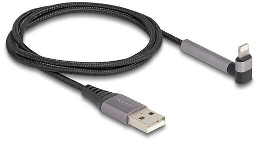 Delock Adat és töltő kábel A-típusú USB - Lightning iPhone , iPad , iPod eszközökhöz hajlított álló funkcióval, fekete és 1, 5 m hosszú, Mfi (85404)
