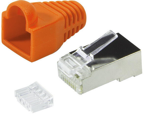 LogiLink RJ45 Moduláris Csatlakozó, Cat. 6, Árnyékolt, Narancssárga Tartó, 100 db